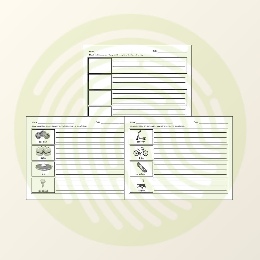 This Sentence Writing Prompts – Set 2 has 4 sentence prompts per worksheet. Many kids with language-based difficulties require many opportunities to write complete sentences. If your student has difficulty writing 4 sentences in one sitting, you can decide to use the Sentence Writing Set 1 that has only 3 sentence prompts per worksheet – or assign 2 sentences one day and 2 sentences the next day.